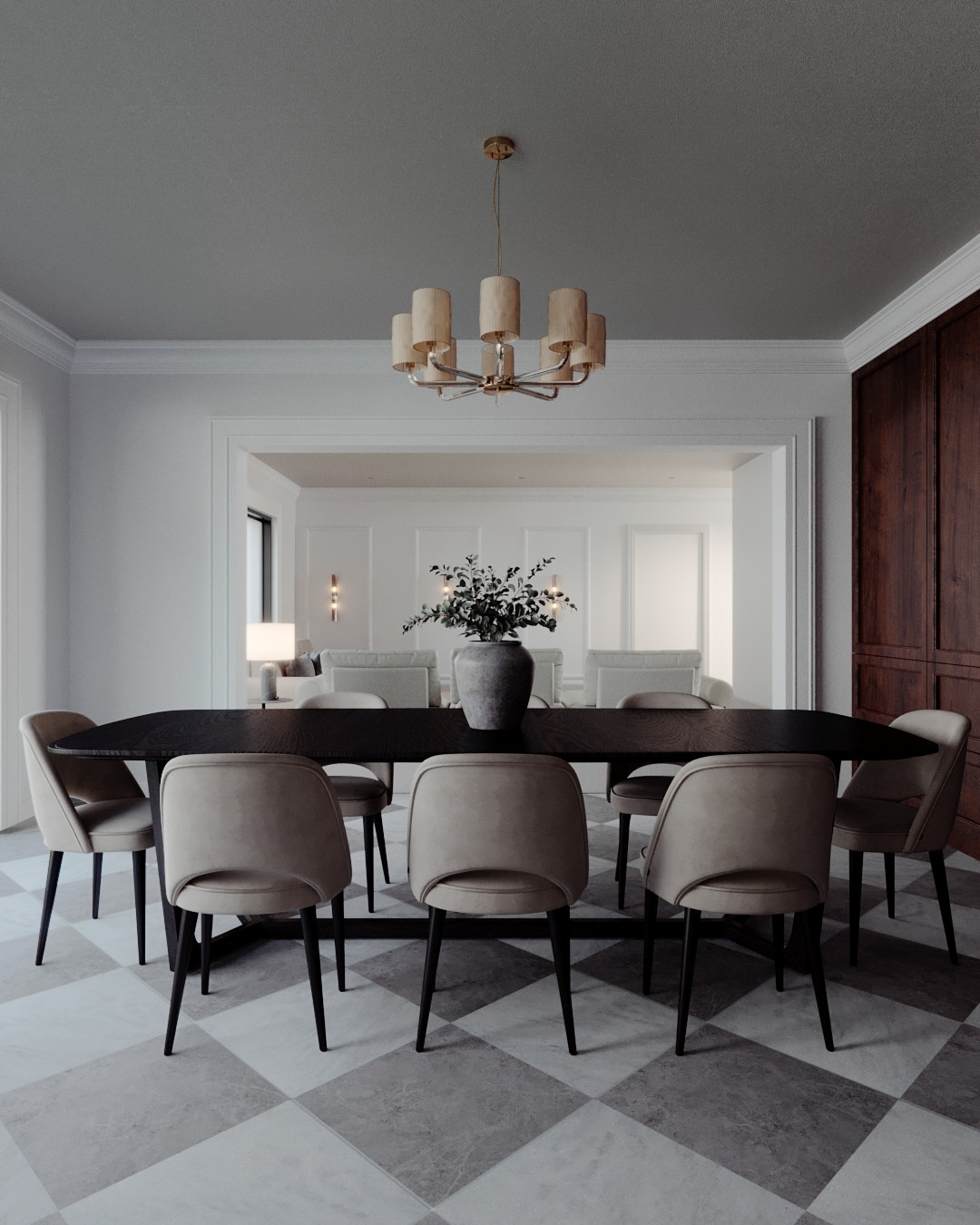 El interior mantiene un estilo clásico en cada detalle: molduras, materiales nobles, tonos neutros y una atmósfera cálida que convierte cada espacio en una experiencia.